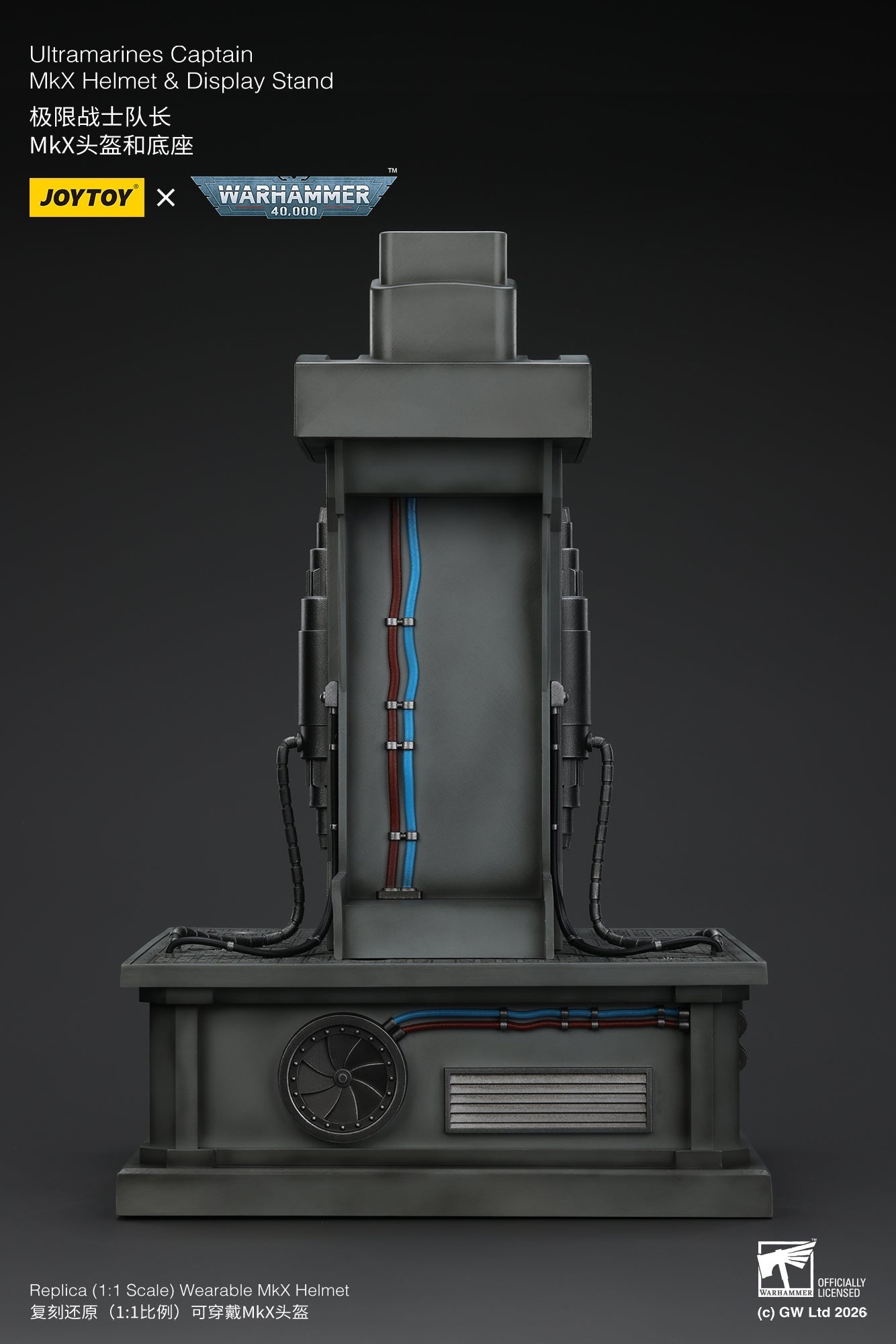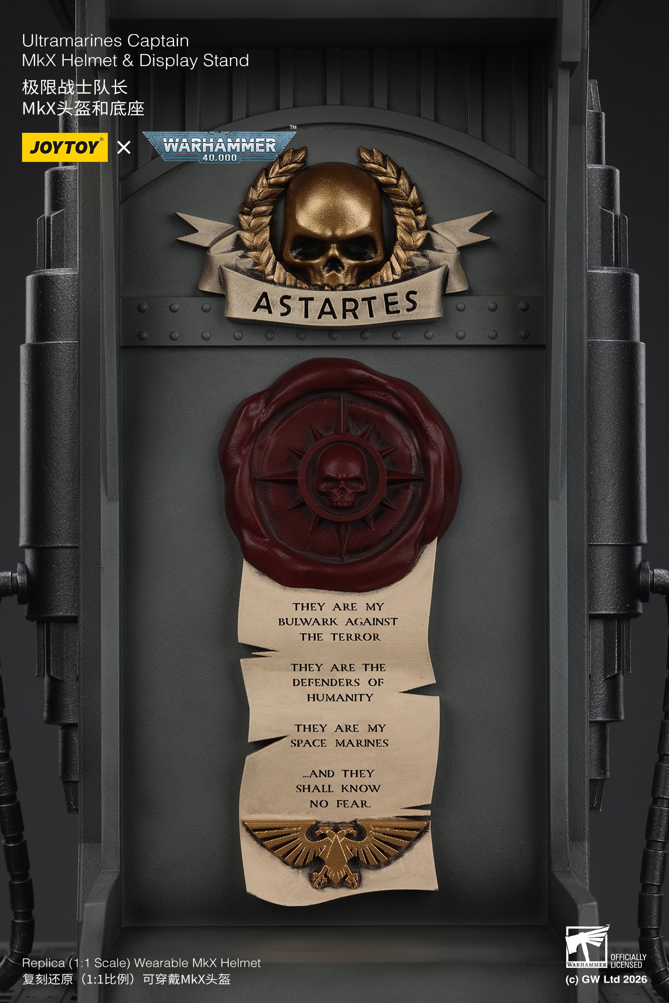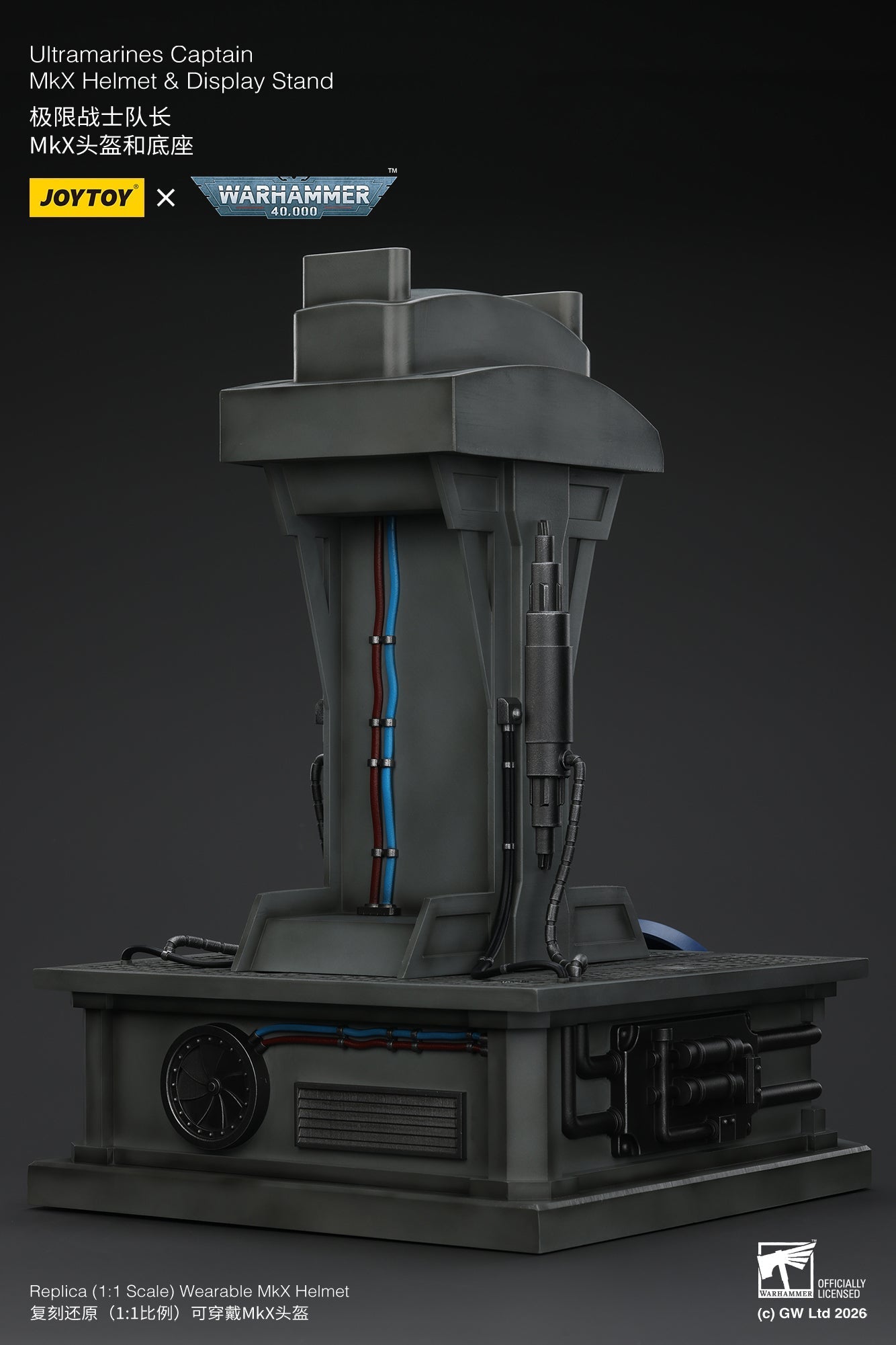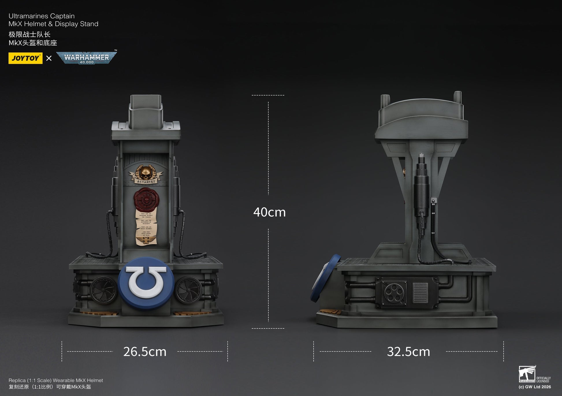 Ultramarines Captain MkX Helmet & Display Stand- Warhammer 40k 1/1 Action Figure By JOYTOY